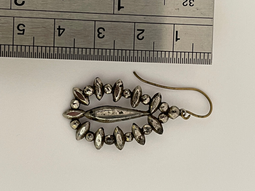 Measuring 33mm in length without the hooks (40mm including the hooks) and 20mm wide, they display an elegant, balanced form that presents beautifully when worn. The crisp faceting and intact rivets produce excellent reflective brilliance, while the subtle age patina adds the authenticity collectors value.